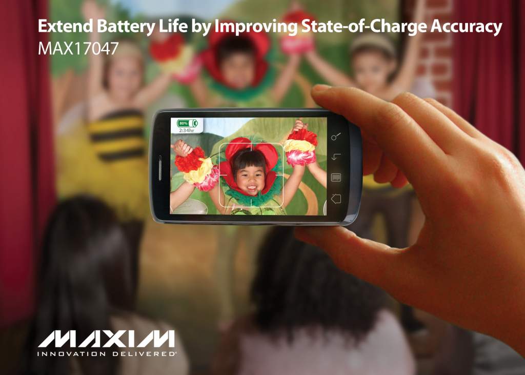 Maxim Integrated Products, Inc 推出用于單節(jié)Li+電池組的電量計(jì)MAX17047。MAX17047采用公司最新的ModelGauge™ m3算法,是業(yè)內(nèi)唯一一款避免了傳統(tǒng)庫(kù)侖計(jì)算法中突變修正的庫(kù)侖電量計(jì)。與其它庫(kù)侖計(jì)相比,該ModelGauge m3 IC使用的檢流電阻更小、外部元件更少,有效節(jié)省了空間和成本。該款I(lǐng)C可理想用于單節(jié)和多節(jié)Li+電池的電量計(jì)算,適用于各種便攜式應(yīng)用(包括:無(wú)線手機(jī)、智能電話、平板電腦、電子書(shū)、便攜式游戲機(jī)、數(shù)碼相機(jī)、金融終端、便攜式導(dǎo)航設(shè)備以及便攜式醫(yī)療器械)。