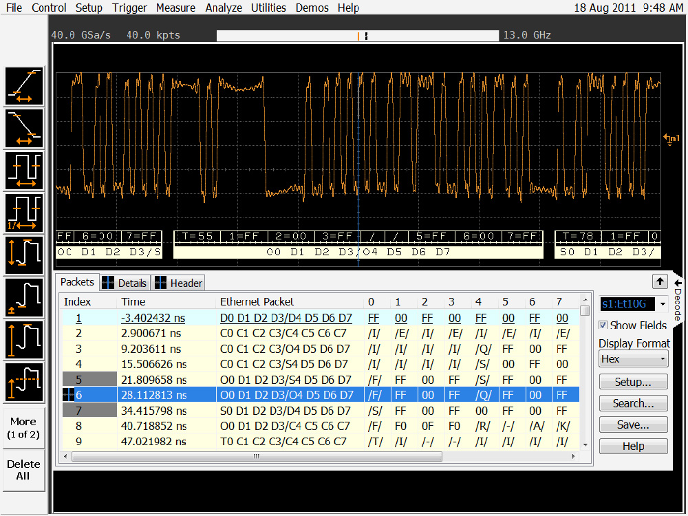 迄今為止,業(yè)界僅針對 I2C、SPI、CAN 等總線或基于 8b/10b 的解碼方案提供以示波器為基礎(chǔ)的協(xié)議解決方案,而 64b/66b 開發(fā)人員只能對這一復(fù)雜設(shè)計進行手動解碼。Agilent N8815A 以太網(wǎng) 10Gbase-KR 解碼應(yīng)用軟件可以實時執(zhí)行解碼程序,使開發(fā)團隊能夠更快地推出優(yōu)質(zhì)產(chǎn)品。