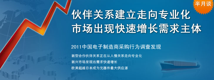 缺貨危機過后,中國電子系統(tǒng)制造商和電子元器件供應(yīng)商對風險共擔、利益共享的伙伴關(guān)系有了新的理解。 2011中國電子制造商采購行為調(diào)查發(fā)現(xiàn),在供應(yīng)商認證與引入過程中建立了系統(tǒng)流程并很好實施的比例顯著增加;讓供應(yīng)商參與早期產(chǎn)品設(shè)計的比例顯著增加;培養(yǎng)供應(yīng)商的比例顯著增加。合作伙伴關(guān)系建立正在從人情關(guān)系走向更加專業(yè)化和系統(tǒng)化。此外,新興市場在新型伙伴關(guān)系基礎(chǔ)上呈現(xiàn)出需求快速增長。