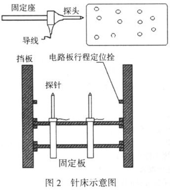 針床是電路板測試系統(tǒng)的重要部件,是電路板信號導出的平臺。針床的通用性較差,一般是每種電路板對應一個特定的針床,這使系統(tǒng)的通用性受到很大的限制。為使針床具有一定的通用性,本系統(tǒng)中對針床的相關部件進行了一些改進: