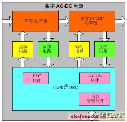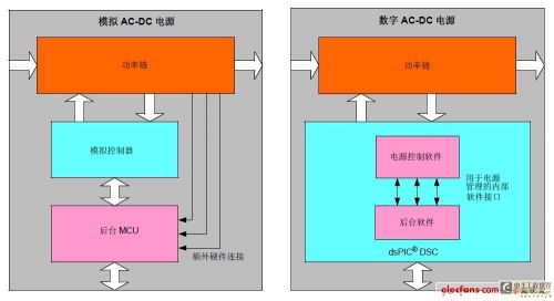 傳統(tǒng)開(kāi)關(guān)電源(Switch Mode Power Supply,SMPS)控制通常使用純模擬技術(shù)。低成本和高性能數(shù)字信號(hào)控制器(Digital Signal Controller, DSC)的出現(xiàn)開(kāi)啟了開(kāi)關(guān)電源控制的全新境界,并且標(biāo)志著電源產(chǎn)業(yè)正朝著數(shù)字革命的方向發(fā)展。
