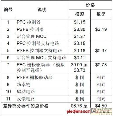 無(wú)論在PFC 級(jí)中使用或者未使用外部MOSFET 柵極驅(qū)動(dòng)器,表1 中列出了不同模擬電源的所有BOM 成本。