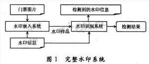 門票是觀看奧運(yùn)會、演唱會、參加高級會議的入場券。隨著高質(zhì)量圖像輸入輸出設(shè)備的發(fā)展,特別是精度超過1200dpi的彩色噴墨、激光打印機(jī)和高精度彩色復(fù)印機(jī)的出現(xiàn),門票的偽造變得更加容易。所以人們迫切需要一種有效的門票防偽及檢測技術(shù)。傳統(tǒng)的防偽技術(shù),基本上都采用材料防偽,屬于共性化防偽。如果被人仿冒,后果不堪設(shè)想,也存在造價(jià)高等缺點(diǎn)。而數(shù)字水印技術(shù)屬于個性化防偽技術(shù),它是與個性特征相結(jié)合,并且不改變成熟的印刷工藝,不改變印刷材料與設(shè)備,不增加印刷成本,是目前較好的防偽技術(shù)。