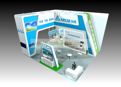 時(shí)尚亮麗的展臺(tái)設(shè)計(jì),凸顯臺(tái)達(dá)自動(dòng)化專業(yè)、環(huán)保特色