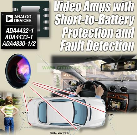 Analog Devices, Inc. ,全球領(lǐng)先的高性能信號處理解決方案供應(yīng)商,最近推出一系列高速視頻放大器ADA4830-1/2和ADA4432-1/33-1,這些器件集成電池短路保護和故障檢測功能,適合汽車安全和信息娛樂應(yīng)用中的模擬視頻系統(tǒng)。ADI公司的這些新款集成式視頻放大器采用3mm x 3mm封裝,與完全分立式解決方案相比,電路板空間至少節(jié)省80%,非常適合后視攝像頭等空間受限的應(yīng)用。ADA4830-1(單通道)和ADA4830-2(雙通道)視頻差動放大器以及ADA4432-1(單端輸出)和ADA4433-1(差分輸出)模擬視頻濾波器放大器為設(shè)計人員提供了通過屏蔽和非屏蔽雙絞線電纜傳輸模擬視頻信號的完整芯片組。以上視頻放大器也可單獨使用,以作為視頻信號鏈一部分來提供接收機(ADA4830-1/2)和發(fā)射機(ADA4432-1/33-1)功能。所有這些新款放大器均內(nèi)置最高18 V的電池短路保護、接地短路保護、故障檢測、寬共模電壓范圍和魯棒的ESD(靜電放電)性能。