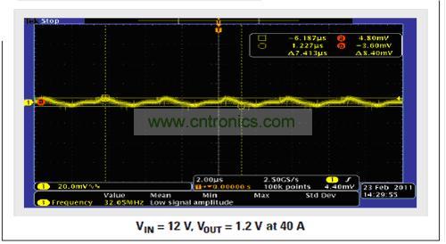 由于每個輸出電感中存儲的能量降低,負(fù)載瞬態(tài)性能隨之提高。電流抵消帶來的紋波電壓降低,幫助實(shí)現(xiàn)了最小輸出電壓過沖和下沖,因?yàn)樵诃h(huán)路響應(yīng)以前許多周期都已結(jié)束。紋波電流越低,干擾越小。