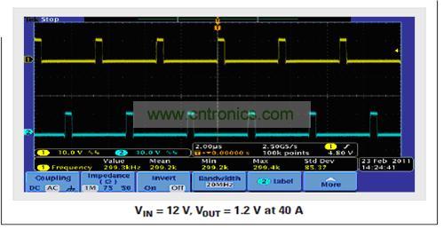 圖11 40-A 負(fù)載1.2-V 輸出Vout 啟動圖