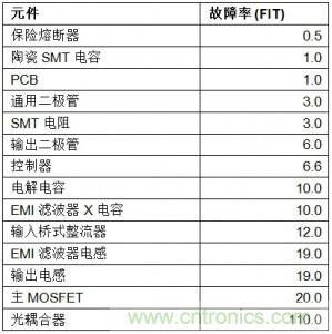 表2顯示出更多的元件會(huì)導(dǎo)致更高的故障率,而增加一個(gè)電解電容會(huì)降低可靠性。