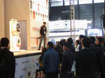 掛在墻上的洗衣機(jī)和用腦波開火車是第80屆中國電子展上極具震撼的場景,現(xiàn)場觀者如潮。在2012亞洲電子展的韓國大宇電子的展臺上,那些形似微波爐的產(chǎn)品其實(shí)是壁掛式滾筒洗衣機(jī),雖然重量只有3公斤,但功能卻相當(dāng)齊全。不遠(yuǎn)處的展臺上,一列跑得慢吞吞的玩具火車開動(dòng)起來不再依靠遙控器,而是人類的腦波。Stream TV展出的42寸裸眼3D顯示裝置,搭載了tream TV獨(dú)家的Ultra-D裸眼3D影像技術(shù),據(jù)公司客戶經(jīng)理呂昱葳介紹,任何時(shí)間,任何地點(diǎn),Ultra-D技術(shù)都可以把用戶所有的電視節(jié)目甚至家庭錄影實(shí)時(shí)轉(zhuǎn)換成裸眼3D效果。