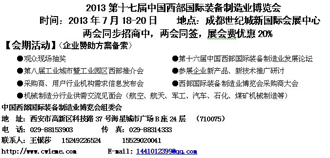 同期舉辦:中國(guó)西部國(guó)際裝備制造業(yè)發(fā)展論壇