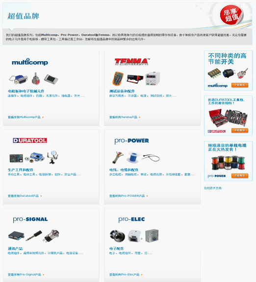 連接器、電容、電阻、半導(dǎo)體、燈具、發(fā)光二極管、開關(guān)、保險絲、變壓器、風(fēng)扇和配件等,同時可通過該平臺非常方便地研究、比較、購買所需產(chǎn)品,并享受2013年全新優(yōu)惠價格,獲得更大價值。