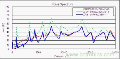 圖6:ZR*18(嘯叫抑制產(chǎn)品)和GRM18(通用產(chǎn)品)的嘯叫等級(jí)比較