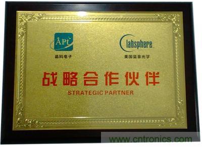 圖1:美國藍菲光學(xué)(Labsphere)與晶科電子(廣州)有限公司結(jié)成戰(zhàn)略合作伙伴的紀(jì)念銅牌