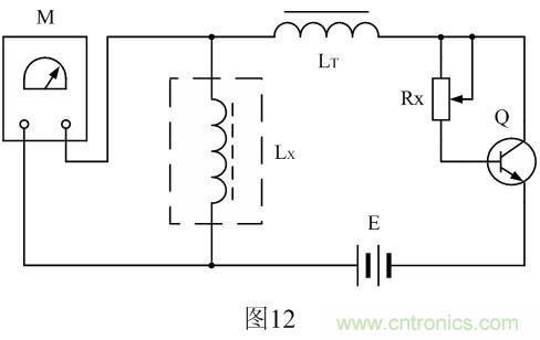 在圖11中,E為穩(wěn)壓電源,Rx為可調(diào)電阻,Q為晶體管大功率放大器(必須帶散熱片);調(diào)節(jié)穩(wěn)壓電源的輸出電壓,或改變可變電阻的阻值,就可以改變迭加電流的大小,但晶體管大功率放大器集電極與發(fā)射極之間的電壓降不要大于10V,否則,晶體管大功率放大器的損耗將很大。一般穩(wěn)壓電源都有電流輸出指示,所以在測試電路中不需要另外安裝電流表。