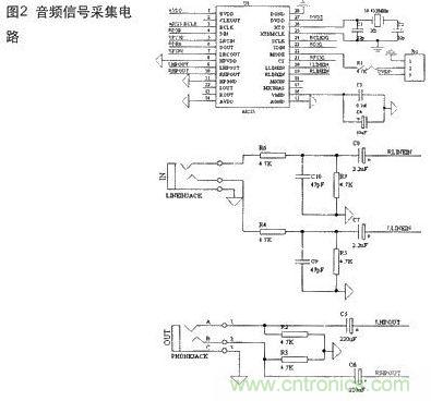 圖2是音頻信號(hào)采集的具體電路圖。