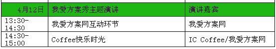 我愛方案網(wǎng)聯(lián)手中國電子分銷商聯(lián)盟,中國電子展和電子元件技術(shù)網(wǎng), 以激發(fā)設(shè)計靈感,力推中國原創(chuàng)為宗旨, 在2014中國電子展(中國電子信息博覽會,4月10日-12日)期間推出六大熱點活動,服務(wù)中國的原創(chuàng)設(shè)計,助力中國電子信息產(chǎn)業(yè)的騰飛!中國電子行業(yè)最具人氣的交流創(chuàng)新平臺IC咖啡為此次活動的支持單位。歡迎現(xiàn)場偶遇知芯人。