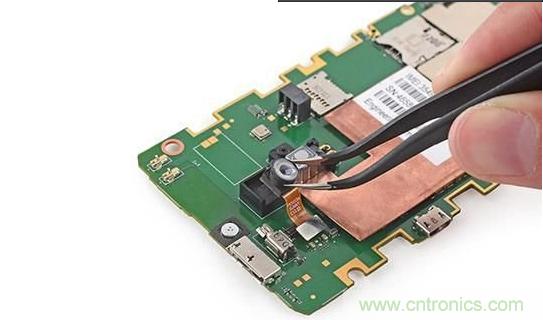 主板上搭載了為較低感測(cè)器陣列提供電氣接地與熱耗散的銅。iFixit表示,造成高熱量產(chǎn)生的罪魁禍?zhǔn)资莵?lái)自手機(jī)上的一連串紅外線(xiàn)LED。
