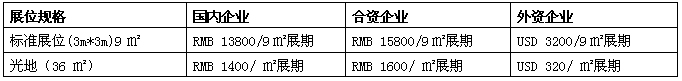 標(biāo)準(zhǔn)展位費(fèi)用:(注:雙面開(kāi)口加20%開(kāi)口費(fèi))