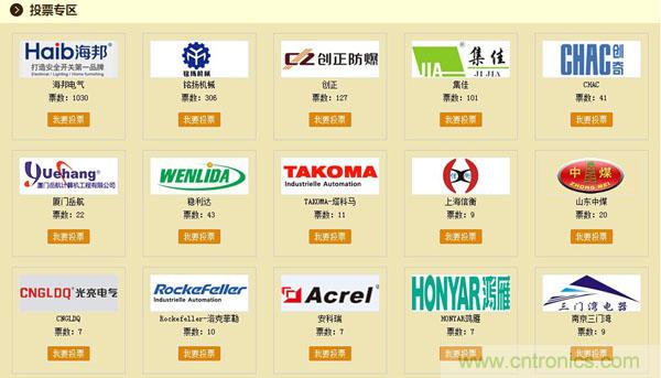 “2014第二屆電氣行業(yè)網(wǎng)絡(luò)十大品牌評(píng)選活動(dòng)”由中國(guó)工業(yè)電器網(wǎng)主辦,是電氣行業(yè)發(fā)展的風(fēng)向標(biāo),投票環(huán)節(jié)9月1日開(kāi)啟。廣大網(wǎng)友可繼續(xù)通過(guò)中國(guó)工業(yè)電器網(wǎng)網(wǎng)絡(luò)投票系統(tǒng),向自己熟悉的、喜歡的電氣企業(yè)投上寶貴的一票,共同見(jiàn)證下一個(gè)電氣行業(yè)網(wǎng)絡(luò)十大品牌的誕生!