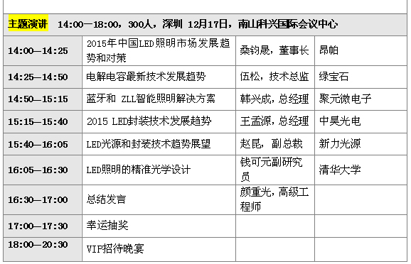 其它我就不多說,請(qǐng)看下面最新的研討會(huì)議程,歡迎大家撥冗前來與各位專家教授研討,共商中國LED照明產(chǎn)業(yè)健康發(fā)展之道。