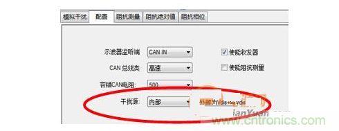 打開CANStress配置,將干擾源確定為內(nèi)部。保證CANL對地短路。如圖 7所示。