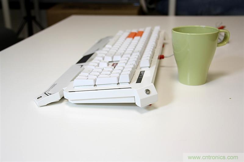 拆開鍵帽,就能看到這款鍵盤的另一大特點(diǎn),鍵帽和鍵盤上面板很好的把軸體包裹,巧妙的形成了防濺水設(shè)計(jì)。眾所周知,機(jī)械鍵盤是最怕液體的鍵盤,血手幽靈B740這個(gè)設(shè)計(jì)就能很好的降低用戶試用鍵盤時(shí)進(jìn)水的危險(xiǎn)。