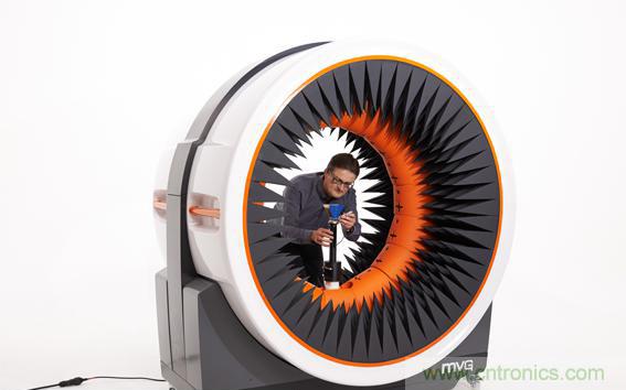 本次MVG向中國市場推介的重點產(chǎn)品,是千里迢迢從法國空運至展館的緊湊便攜式天線測量系統(tǒng)StarLab,這個高度僅為1.8米的測試系統(tǒng),可幫助客戶快速建立起一個嵌入式天線的測試平臺,無需暗室便可進行天線測量,測試頻率范圍為650MHz-18GHz,在節(jié)約時間、提高研發(fā)效率和保密性方面,其為客戶提供的價值不言而喻。