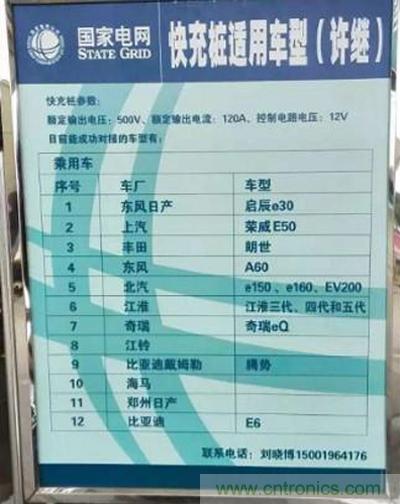 圖2.國(guó)家電網(wǎng)充電樁適用車型告示牌