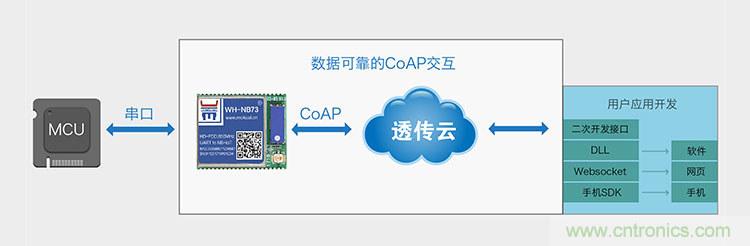 不僅優(yōu)化模塊內部的嵌入式軟件和AT指令的易用性,更是站在用戶角度考慮端到云的應用場景,提供透明傳輸UDP模式,提供CoAP通訊組件,嚴格的重傳機制,保障數據發(fā)出必答,不達報警,更有透傳云服務,讓用戶零編程即可使用NB-IoT搭建系統(tǒng)。