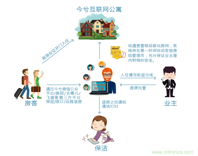 今兮無人值守酒店旨在為短期出行人群打造私享、自由、便捷、安全型的優(yōu)質(zhì)住宿體驗,所以旗下全部住宿空間均采用現(xiàn)代智能身份證識別安全門鎖,入住僅需刷身份證開門,自動登記身份證信息,實現(xiàn)了網(wǎng)絡(luò)預(yù)訂、自助入住、續(xù)住、遠(yuǎn)程退房的全流程無前臺的服務(wù)模式。 今兮互聯(lián)網(wǎng)公寓對傳統(tǒng)酒店管理各環(huán)節(jié)進(jìn)行了優(yōu)化,將預(yù)訂、入住、退房、保潔、維修、結(jié)算整個過程無縫對接起來,各方參與人員通過手機實現(xiàn)連接,提高管理效率,節(jié)省酒店的管理成本,也提升了住客的居住體驗。