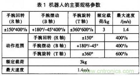確定了空間結構和手腕結構后,可確定手腕回轉、手腕擺動及手腕旋轉三個姿態(tài)的自由度。其參數(shù)見表l (參數(shù)來于SSA2000工業(yè)機器人)。