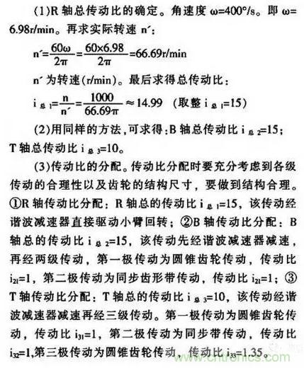 諧波齒輪減速器是一種新型的機械傳動變速機構。 與普通齒輪傳動相比,具有體積小,重量輕,結構簡單。它與傳動比相當?shù)钠胀p速器比較,其零件減少50%。 體積和重量均減少l,3左右或更多。傳動比范圍大(單級傳動比為40~350,多級傳動比可達1600~100000),傳動效率高(單級傳動效率饑≥85%),傳動精度高。承載能力強等特點。 根據(jù)所選擇的電機,選擇型號為SGMAH—OIA,額定功率為loo W,額定轉矩為0.318 N·m,額定轉速為 3000 drain的交流伺服電動機。同時選擇XBl諧波減速機,機型為25,減速比為40,輸出力矩為1.0N·m,輸入轉速為3000 r/min。為了訂貨和維修方便,三軸均采用同一種減速器。