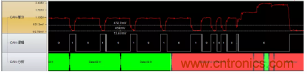 圖6波特率異常(位寬度從2us突然變成1.6us),導致位錯誤引起錯誤幀。位寬的不穩(wěn)定是波特率不穩(wěn)定導致的,最有可能的原因是晶振問題,建議更換晶振測試。