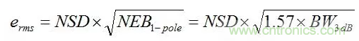 然而,關(guān)于應(yīng)把該乘法因數(shù)放在噪聲公式中的何處,似乎一直存在混淆。請記住,NEB調(diào)節(jié)的是帶寬,而非噪聲,因此應(yīng)在根號下面,如下式所示: