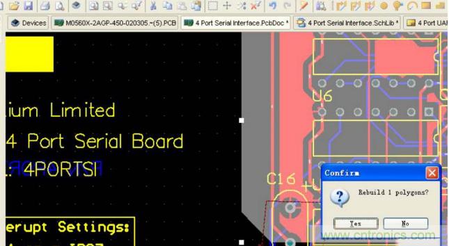 系統(tǒng)會(huì)提示你進(jìn)行重新鋪銅,點(diǎn)擊 YES 。
