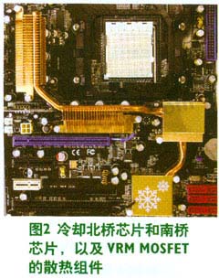 為了應(yīng)對(duì)未來的需求,出現(xiàn)了雙面封裝技術(shù),可讓主板設(shè)計(jì)師對(duì)高性能應(yīng)用的MOSFET進(jìn)行散熱處理,迫使MOSFET廠商成為總體解決方案的供應(yīng)商。過去,臺(tái)式電腦在處理器及北橋芯片和南橋芯片上使用散熱片。雖然這在先前的主板設(shè)計(jì)中不常見(主要是成本原因),但對(duì)MOSFET進(jìn)行散熱已越來越常見。高級(jí)主板市場(chǎng)已經(jīng)開始出現(xiàn)將北橋芯片和南橋芯片上的導(dǎo)熱管連接到VRM的MOSFET散熱片上的散熱組件(見圖2)。