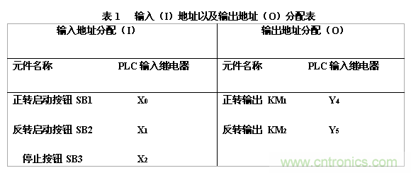 由上圖可知,PLC程序在使用中軟件互鎖功能并不可靠。因此,需在硬件總添加互鎖,地址分配表如表1所示,除了在硬件中添加互鎖外,還需做一個熱保護(hù)裝置。