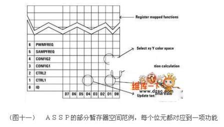 在普通情況下,ASSP只需支援被動(dòng)元件以及一個(gè)外部PROM來(lái)儲(chǔ)存調(diào)校資料。在大部分情況下,存儲(chǔ)器空間可以和系統(tǒng)及周邊共用,因?yàn)檎{(diào)校資料僅需31bytes。