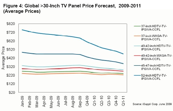 圖4所示為大于30英寸的LCD-TV面板的全球平均價格。
