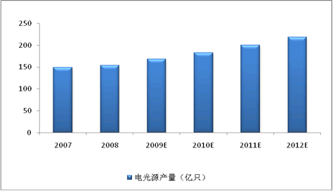 圖:2007-2012中國電光源產(chǎn)量情況及預(yù)測