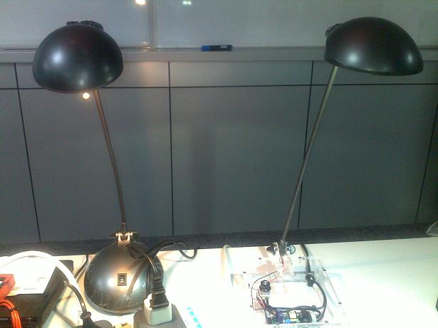 圖3.左邊為鹵素臺(tái)燈,右邊為L(zhǎng)ED模塊做的臺(tái)燈