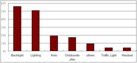 - LED 在筆記本中的滲透率,2007 年大約是3%,2008年是6%-8%