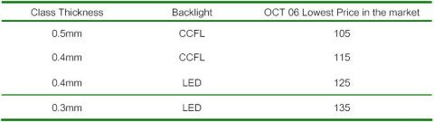 表6 各種背光模組之TFT面板報(bào)價(jià)