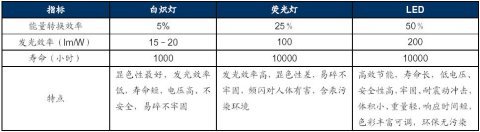 表7 白熾燈、熒光燈、LED三種照明技術(shù)對(duì)比