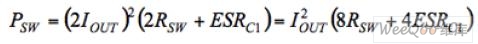 電荷泵的寄生效應(yīng)導(dǎo)致輸出電壓隨著負(fù)載電流的增加而下降。事實(shí)上,總是存在2IOUT的RMS電流流過C1和兩個開關(guān)(2Rsw),導(dǎo)致產(chǎn)生以下的功耗︰