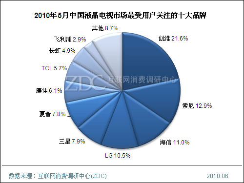 (圖)2010年5月中國液晶電視市場最受用戶關(guān)注的十大品牌