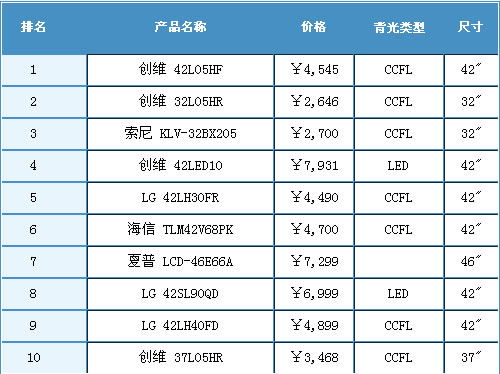 (圖)2010年5月中國液晶電視市場最受用戶關(guān)注的十款產(chǎn)品