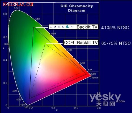 在TV應(yīng)用中,RGB-LED與CCFL背光源相比,最主要的優(yōu)勢(shì)為顯色性,尤以紅色為甚。這是由于CCFL發(fā)出的紅光比綠、藍(lán)光要弱。當(dāng)然,CCFL制造商并未坐以待斃,而是在積極改進(jìn)CCFL技術(shù),并已獲得性能突破。