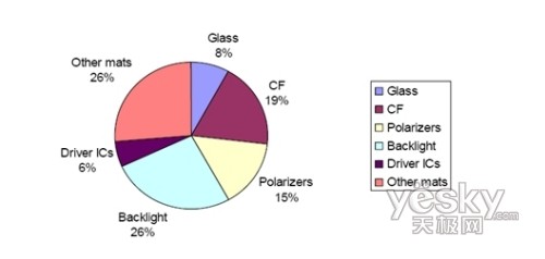其中背光源的25%成本是基于CCFL的數(shù)據(jù),如果采用LED作為背光源,它所占的成本將大大超過這個(gè)比例,大約要占到50%的成本。采用場(chǎng)順序制以后,拿掉了濾色片就相當(dāng)于發(fā)光效率提高了70%,這是非??捎^的。這意味著LED的數(shù)量可以減少70%,LED的成本就可以減少70%。而且LED數(shù)量減少70%以后,其發(fā)熱量可以減少70%,耗電也可以減少70%。