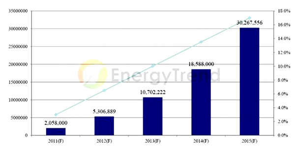 - 預估微型逆變器的滲透率在2011年可提升至3%,在2015年可達15%~20%